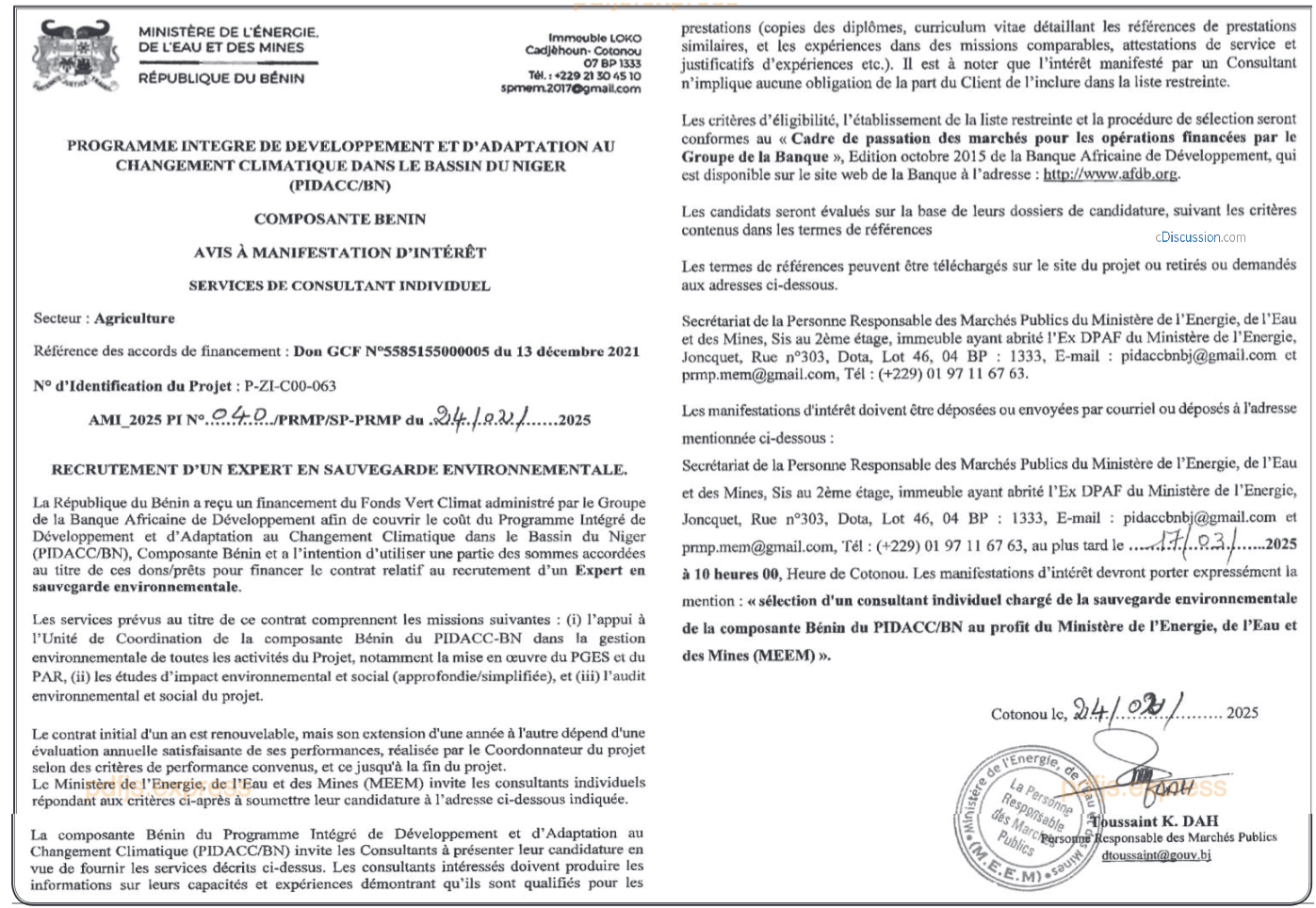 Programme Intégré de Développement et d'Adaptation au Changement Climatique dans le Bassin du Niger (PIDACC/BN)
