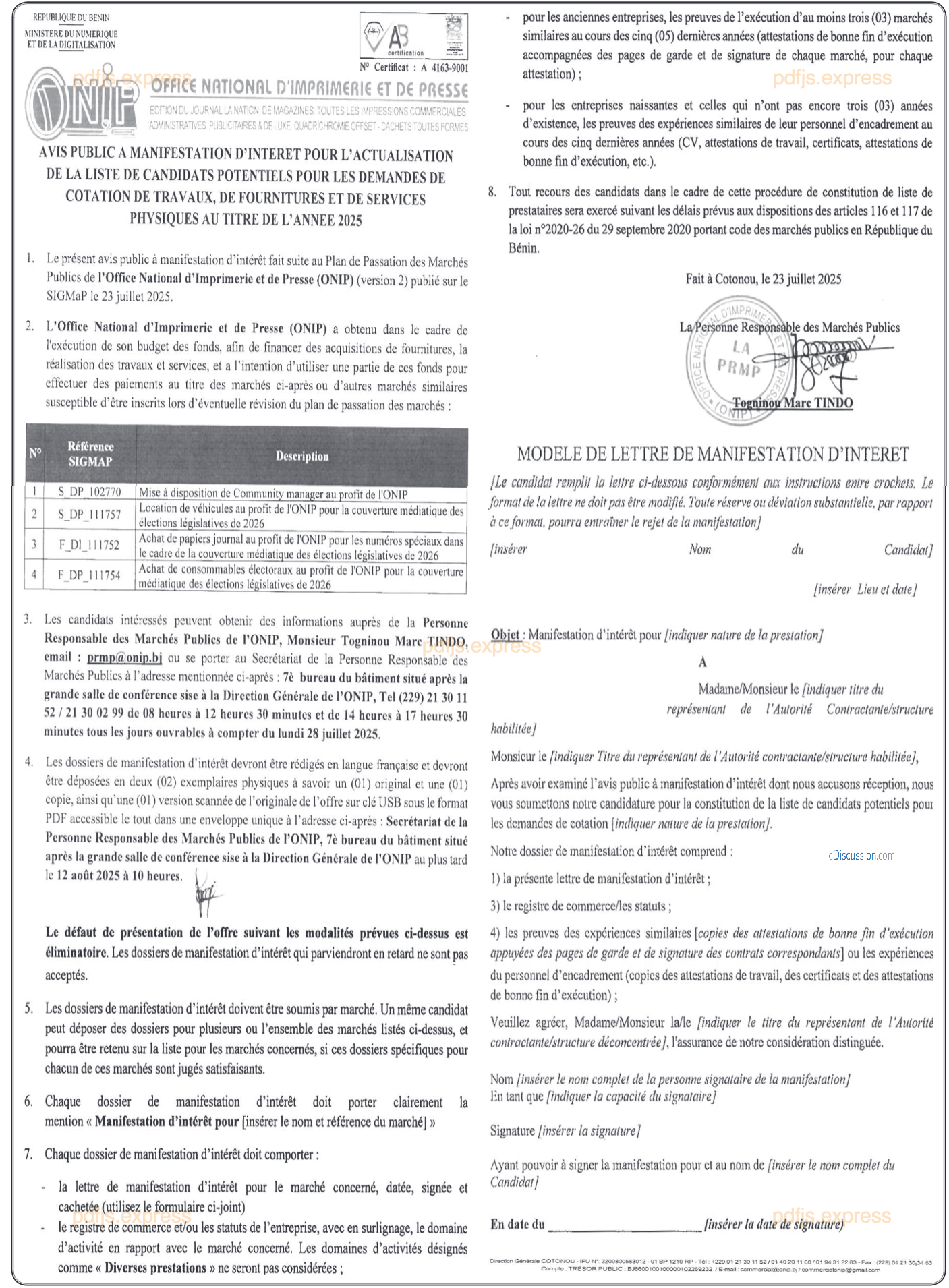 L'Office National d'Imprimerie et de Presse (ONIP)