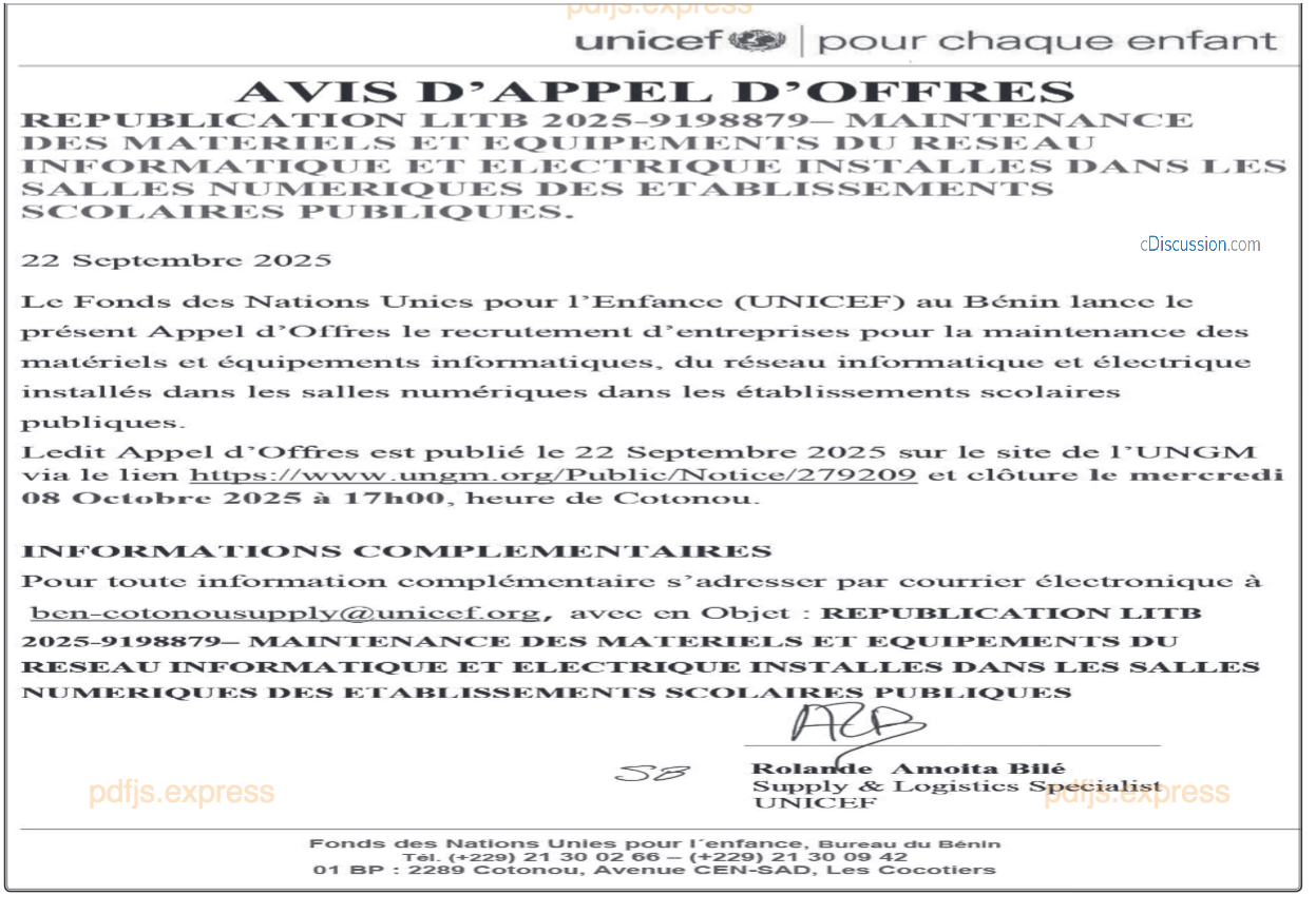 Avis d'appel d'offres pour la maintenance des matériels et équipements du réseau informatique et électrique installés dans les salles numériques des établissements scolaires publiques (Republication)