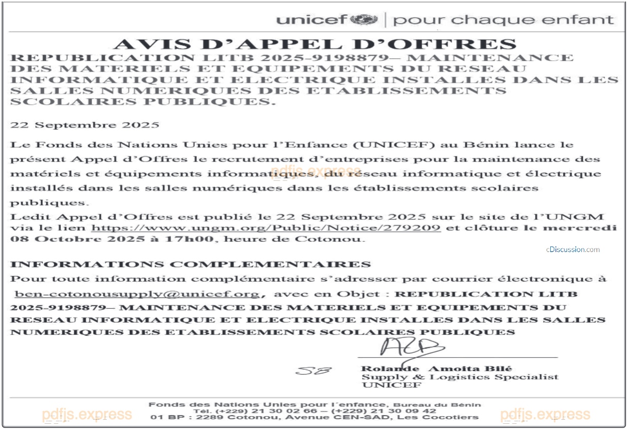 Avis d'appel d'offres pour la maintenance des matériels et équipements du réseau informatique et électrique installés dans les salles numériques des établissements scolaires publiques
