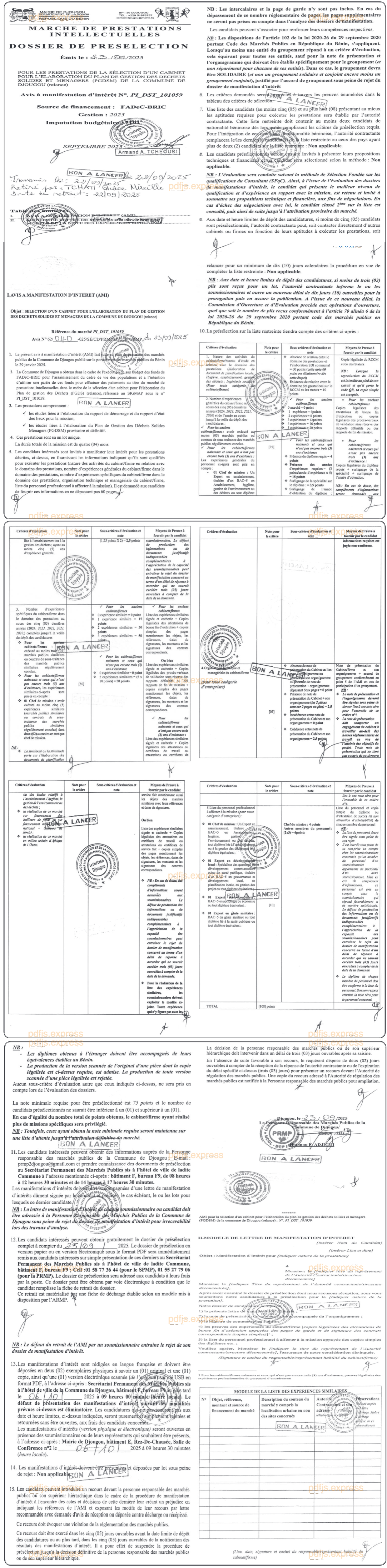 Sélection d'un Cabinet pour l'élaboration du plan de gestion des déchets solides et ménagers de la commune de Djougou