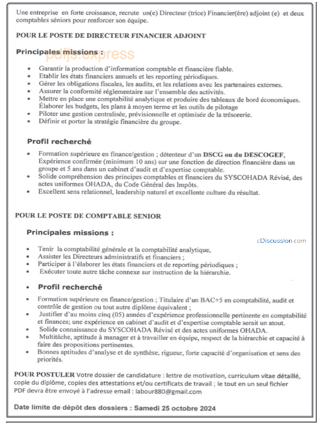 - (01) Directeur(trice) Financièr(ère) Adjoint(e)