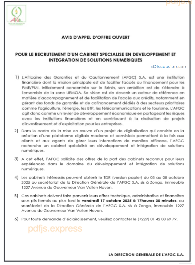 L'Africaine des Garanties et du Cautionnement (AFGC)