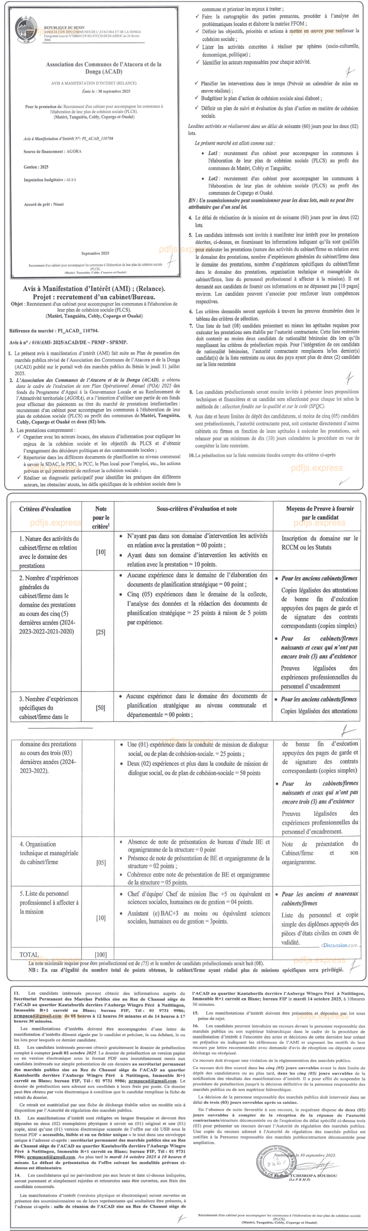 Recrutement d'un (01) Cabinet pour accompagner les communes à l'élaboration de leur plan de cohésion sociale (PLCS)