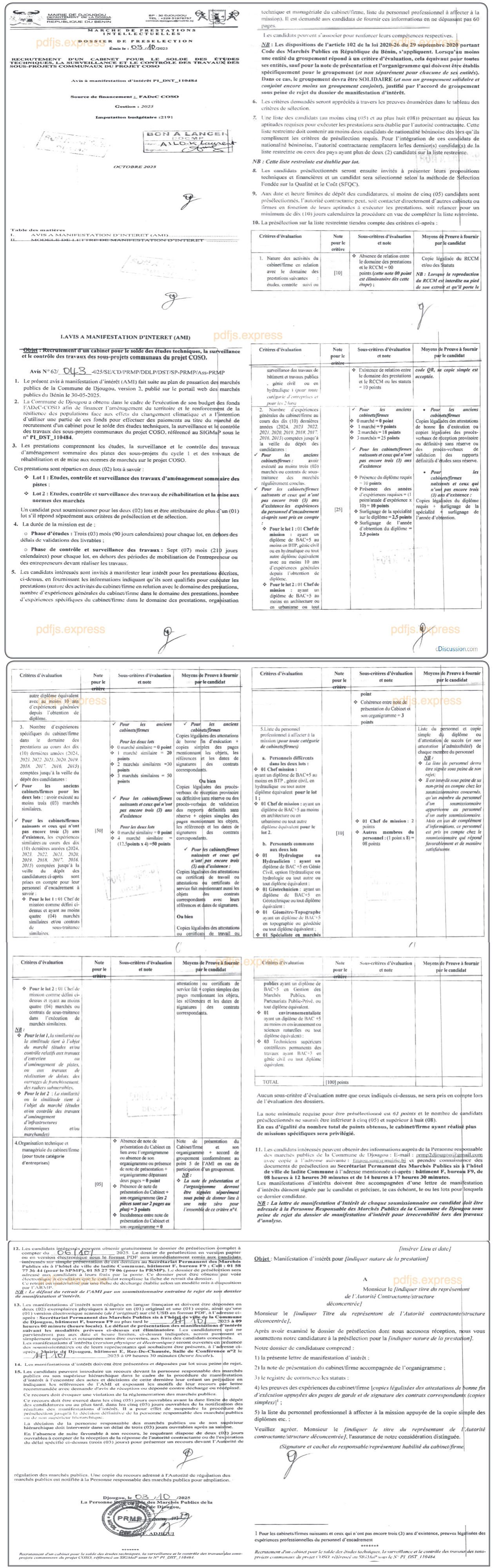 Recrutement d'un Cabinet pour le solde des études techniques, la surveillance et le contrôle des travaux des sous-projets communaux du projet COSO