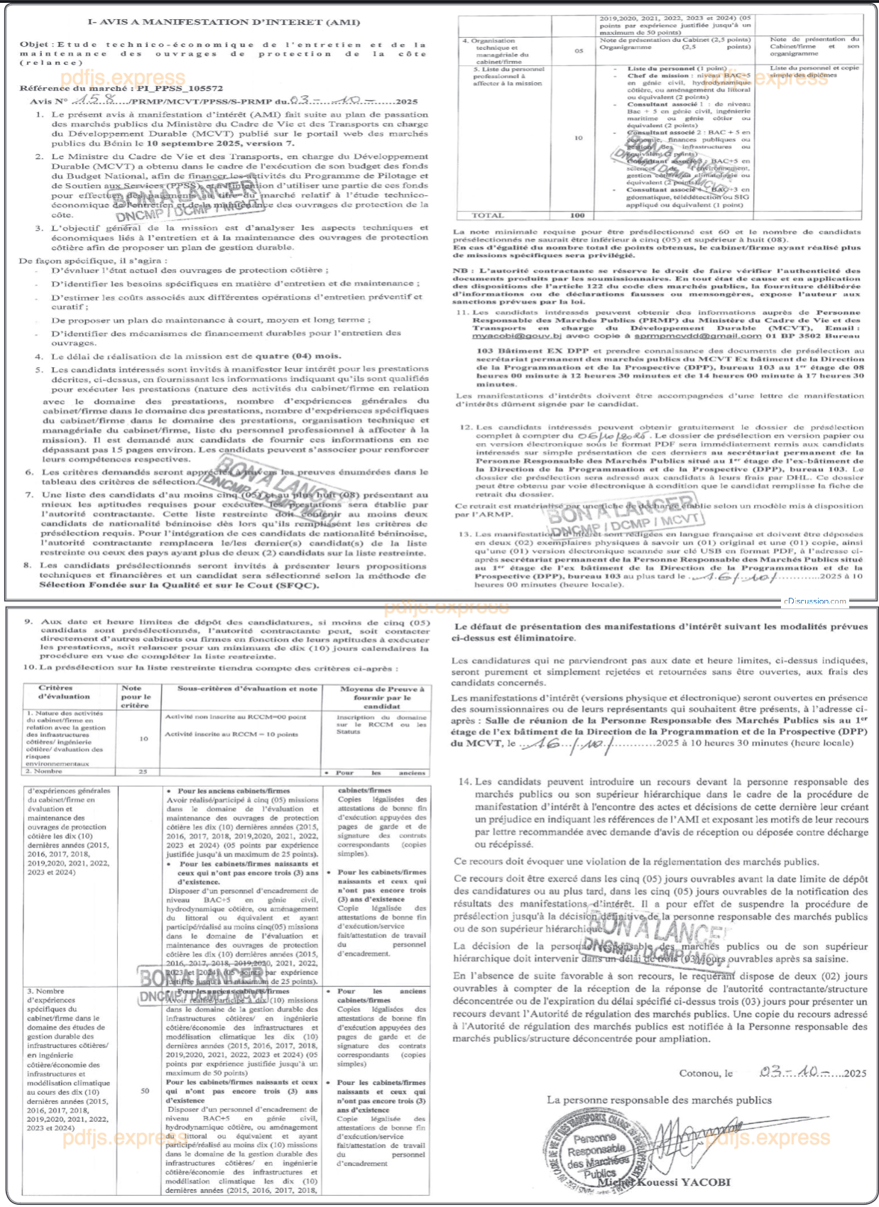 Avis à Manifestation d' intérêt pour l'Etude technico-économique de l'entretien et de la maintenance des ouvrages de protection de la côte (relance)