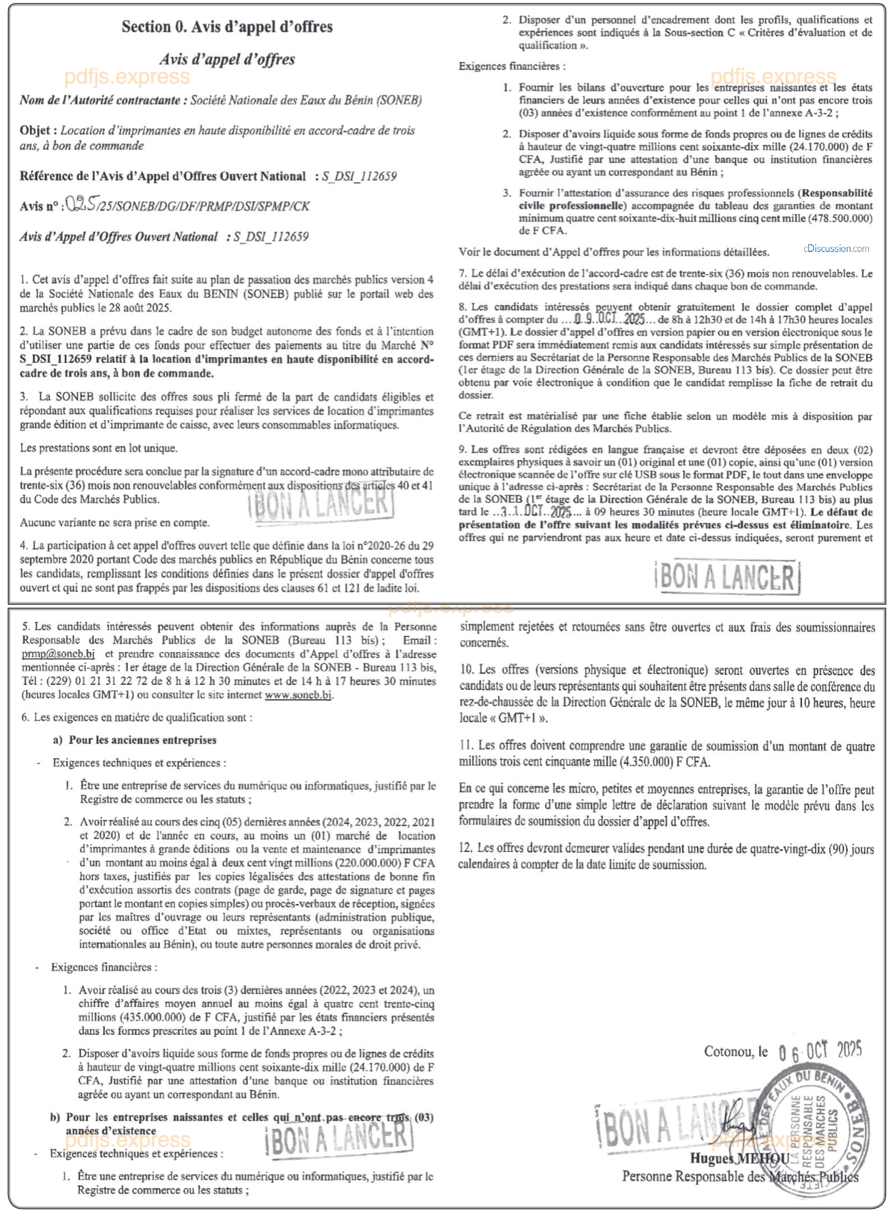 Avis d'appel d'offres relatif à la location d'imprimantes en haute disponibilité en accord-cadre de trois ans, à bon de commande
