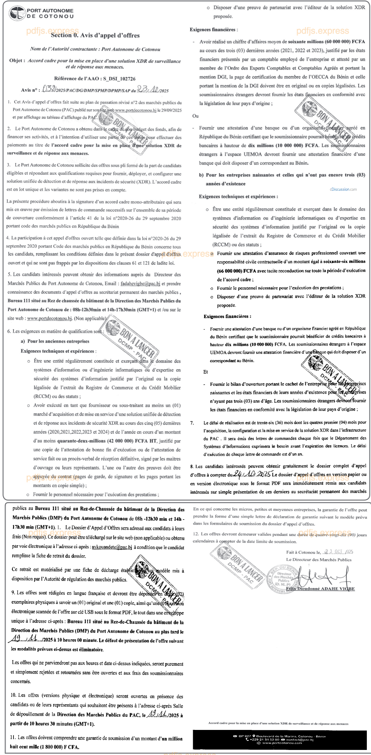 Avis d'appel d'offres pour l'accord cadre pour la mise en place d'une solution XDR de surveillance et de réponse aux menaces