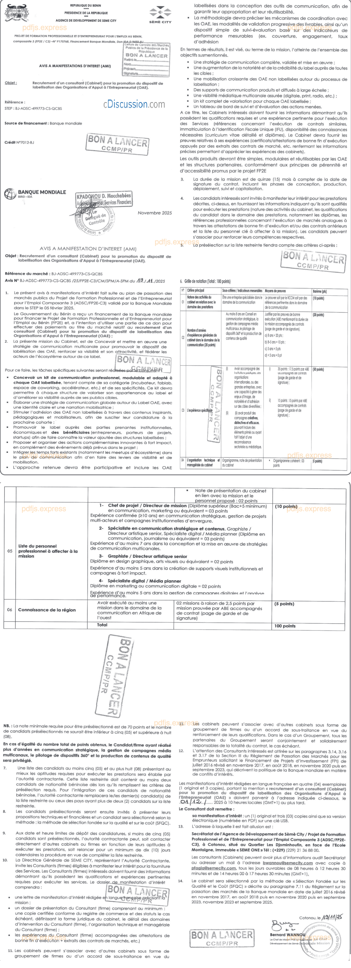 Recrutement d'un consultant (cabinet) pour la promotion du dispositif de labellisation des Organisations d'Appui à l'Entreprenariat(OAEF)
