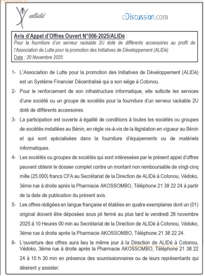 Association de Lutte pour la promotion des Initiatives de Développement (ALIDE)