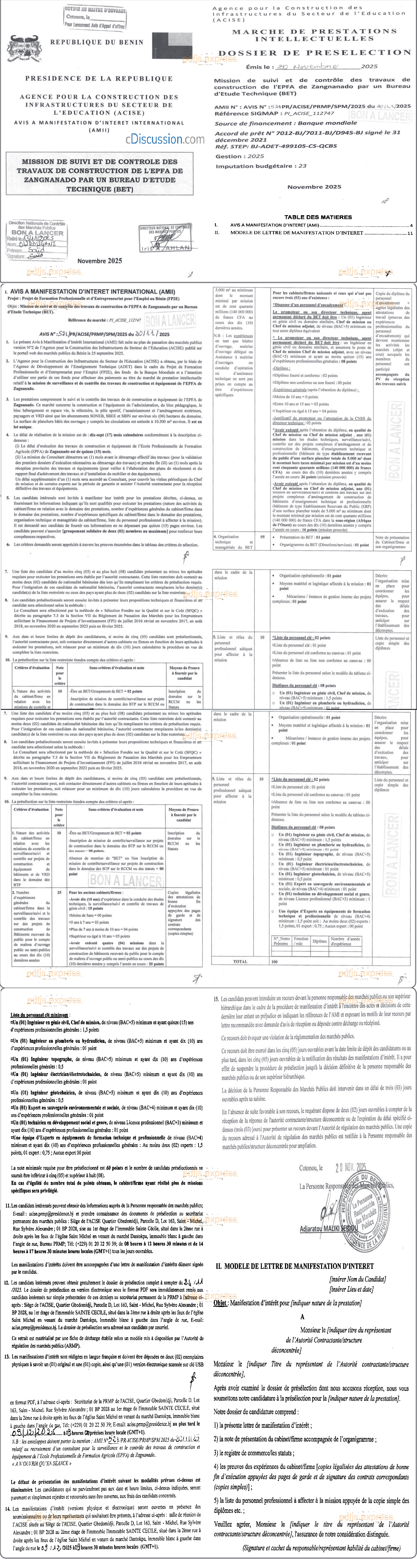 Agence pour la construction des Infrastructures du secteur de l'Education (ACISE)