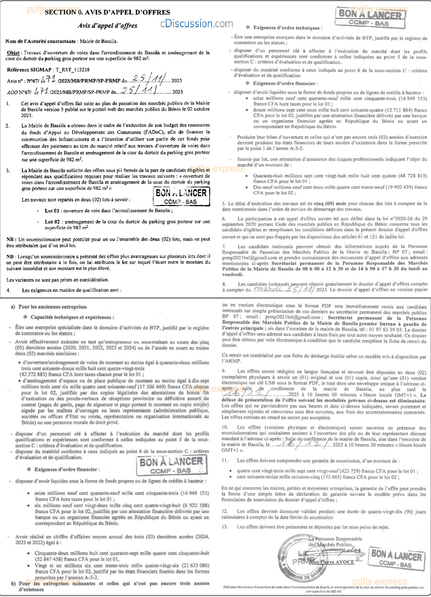 Travaux d'ouverture de voies dans l'arrondissement de Bassila et aménagement de la cour du dortoir du parking gros porteur sur une superficie de 982m2.