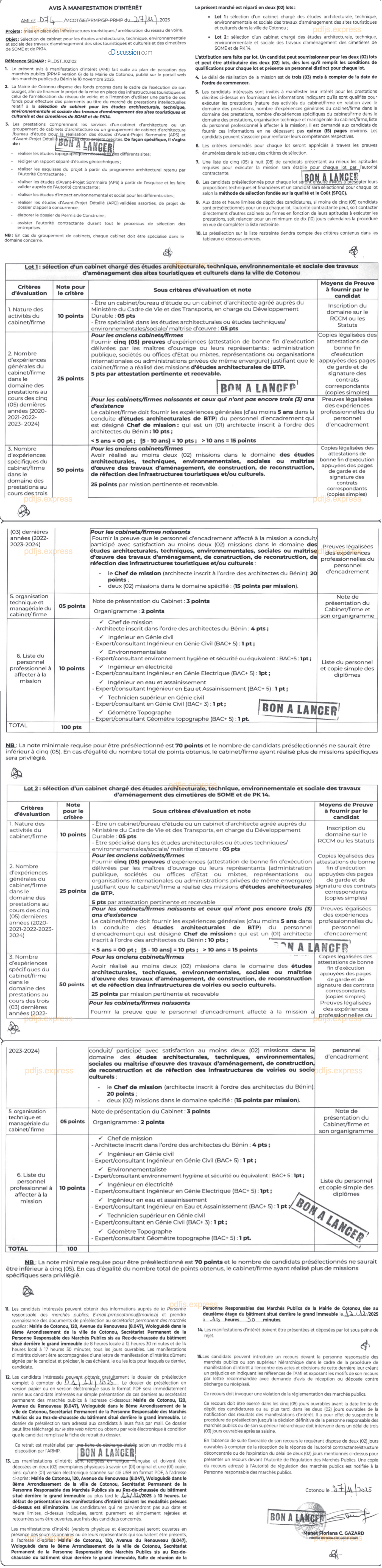 Sélection de cabinet pour les études architecturale, technique, environnementale et sociale des travaux d'aménagement des sites touristiques et culturels et des cimetières de SOME et de PK14