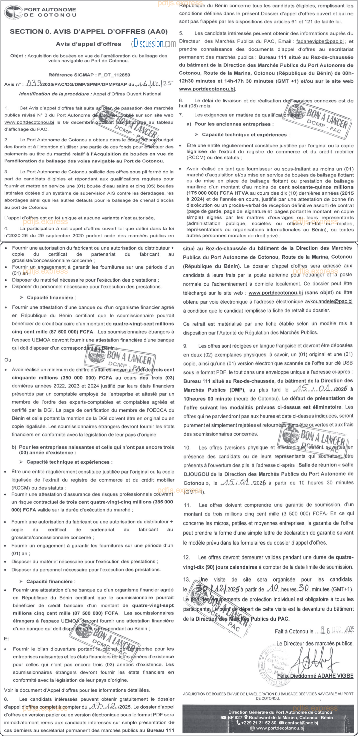 Acquisition de bouées en vue de l'amélioration du balisage des voies navigables au Port de Cotonou