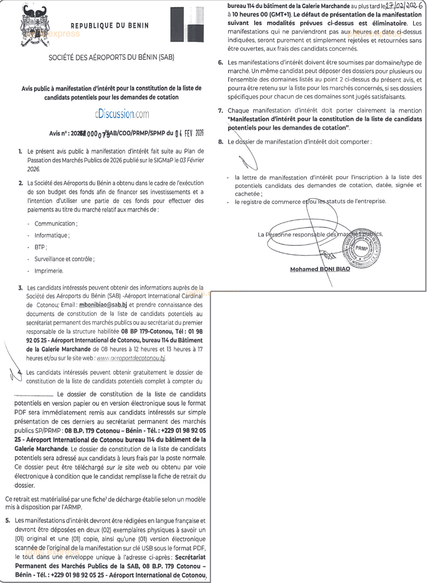 SOCIETE DES AEROPORTS DU BENIN(SAB)