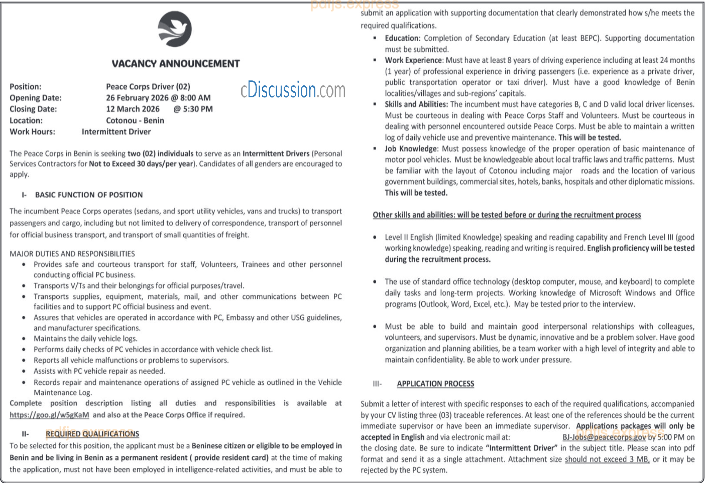 (02) PEACE CORPS DRIVER
