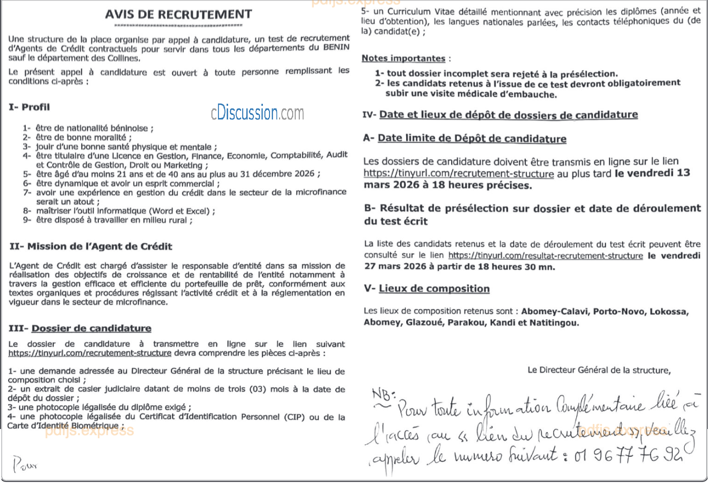 TEST DE RECRUTEMENT D'AGENTS DE CREDIT CONTRACTUELS