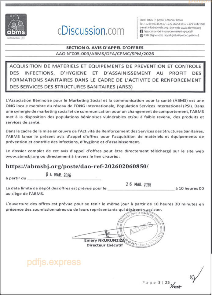 ASSOCIATION BENINOISE POUR LE MARKETING SOCIAL ET LA COMMUNICATION POUR LA SANTE(ABMS)