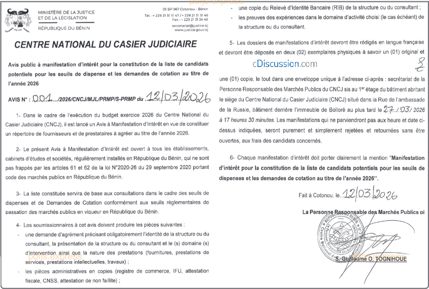 AVIS A MANIFESTATION D'INTERET POUR LA CONSTITUTION DE LA LISTE DE CANDIDATS POTENTIELS POUR LES SEUILS DE DISPENSE ET LES DEMANDES DE COTATION AU TITRE DE L'ANNEE 2026